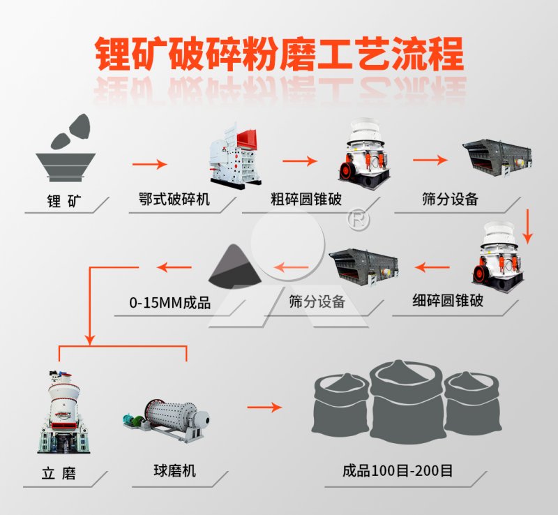 鋰礦破碎制粉生產(chǎn)線我們推舉使用設備包括有顎式破碎機、粗、細碎圓錐破碎機、立式磨以及配套設備振動篩。鋰礦石開采后,由于礦石大小不一,首先要經(jīng)過顎式破碎機進行初破,出料送入粗碎圓錐破碎機進一步破碎,之后通過振動篩篩分出合格物料進行細碎圓錐破碎機的粉碎,得到適合的出料經(jīng)篩分后送入球磨機或者立式磨進行粉磨加工,之后就可以提煉鋰精礦和制備碳酸鋰。