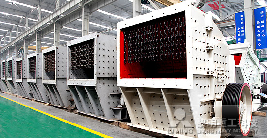 2、中細(xì)碎--反擊式破碎機(jī):反擊破碎機(jī)主要是用來破碎中等硬度物料的,通常和鄂式破碎機(jī)配合使用,在處理磚渣時,進(jìn)料量大,石粉含量少,但是它的鋼性很好,可以有效地控制出料粒度,顆粒大小均勻,有一定的整形功能,其投資成本比同等級的二級破碎機(jī)要少,也是一個不錯的選擇。