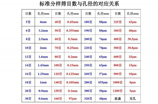 篩網(wǎng)目數(shù)和孔徑對(duì)照表
